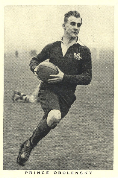 Александр Оболенский родился в 1916 году в Санкт-Петербурге, и ребенком был вывезен в Англию родителями, которые эмигрировали из России после революции 1917 года. Оболенский проявил спортивный талант в школе и в Оксфордском Университете, где его скоростные качества и интуитивное чутье регбийного поля быстро обеспечили ему место в «веере» университетской команды. Он был приглашен в сборную Англии по регби в возрасте всего 19 лет, при этом став причиной небольшого скандала в связи с тем что на тот момент еще не являлся гражданином Великобритании. Гражданство он получил в том же году и продолжил выступления за сборную, а также в составе регбийных клубов «Лестер Тайгерс» и «Росслин Парк». Оболенскому до сих пор принадлежит рекорд по количеству попыток в одном матче – 17(!) заносов в одной игре, когда «Британские Львы» порвали сборную Бразилии в том же 1936 году.