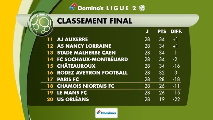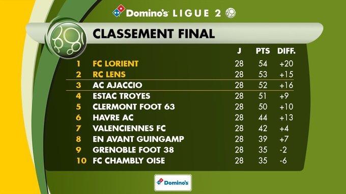 Зато однозначно решено, что по две команды поднимутся и спустятся между Лигой 1 и Лигой 2 для следующего сезона. Таким образом, вылетают на уровень ниже «Амьен» и «Тулуза», а в элитный дивизион поднимутся «Лорьян» и «Ланс».