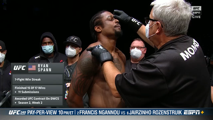 Agresivo y creativo desde el inicio Spann buscando sumisión de pie #UFC249 pic.twitter.com/Q5ytMAhwhx