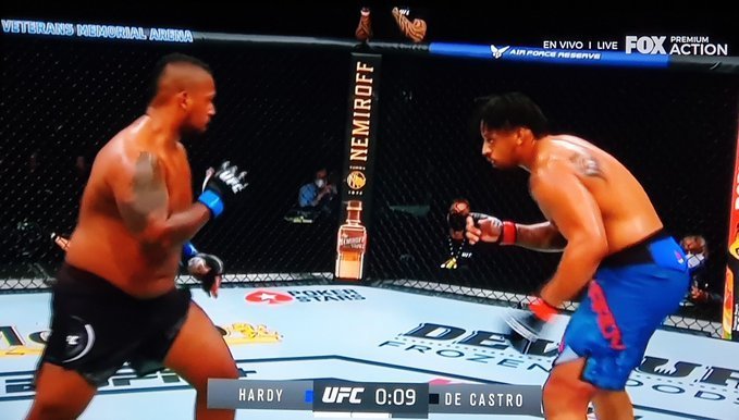 05:43. Все три судьи отдали предпочтение Грегу Харди над Йорганом де Кастро: 30–27, 30–27, 30–27. Бывший игрок-звезда американского футбола победил представителя экзотического Кабо-Верде, бывшей колонии Португалии.