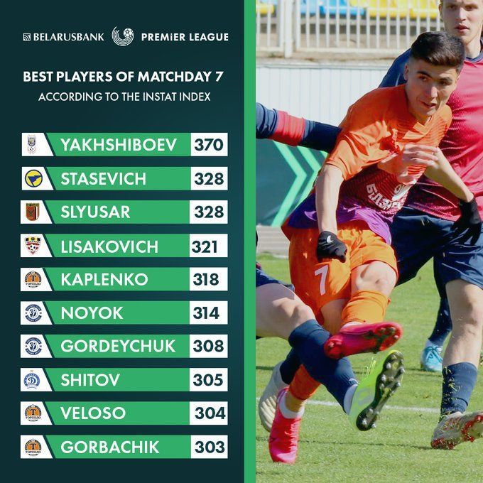 Слюсар забил два гола за «Славию-Мозырь» в матче против «Витебска» и помог своей команде победить 3:2. Он поделил второе-третье место в рейтинге с 328 баллами.