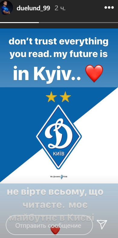 «Не верьте всему, что читаете. Мое будущее в Киеве», – написал Дуэлунд в инстаграме.