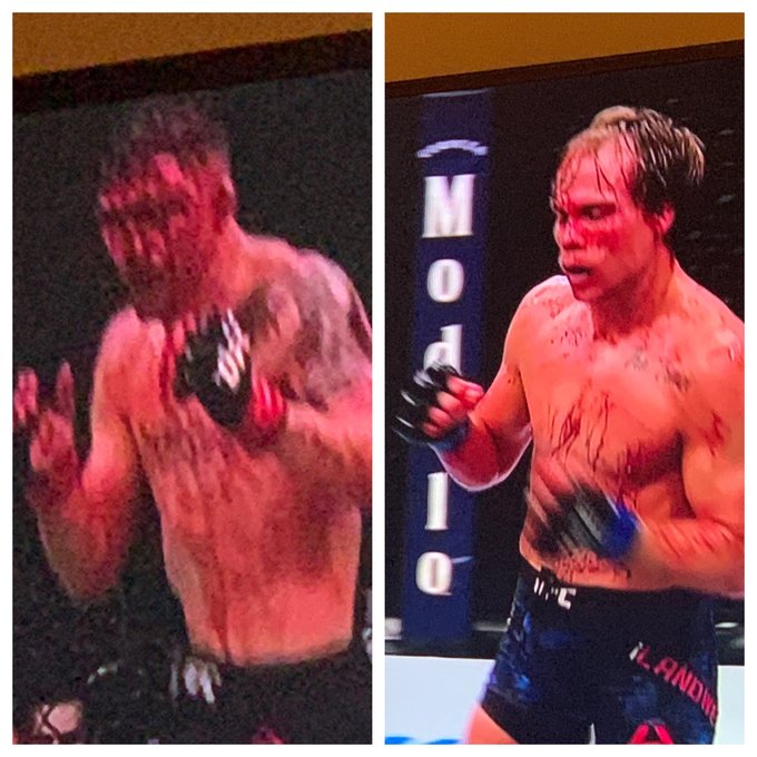 Нейт Ландвер и Даррен Элкинс сотворили кровавое побоище на турнире UFC