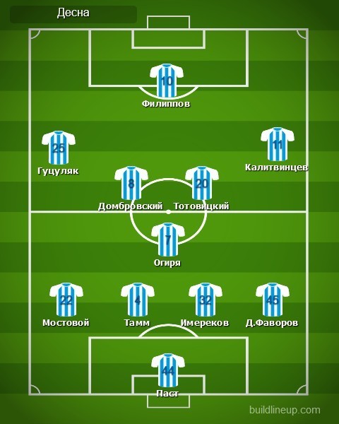 «Десна»: Евгений Паст, Тамм, Владислав Огиря, Андрей Домбровский (Виталий Ермаков, 93), Денис Фаворов, Владислав Калитвинцев (Ефим Конопля, 80), Андрей Тотовицкий (Филипп Будковский, 85), Андрей Мостовой, Алексей Гуцуляк (Егор Картушов, 46), Максим Имереков, Aлександр Филиппов (Андрей Гитченко, 93)