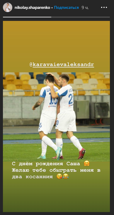 Динамовцы Киева Николай Шапаренко и Виталий Миколенко с шуточками поздравили с Днем рождения Александра Караваева, которому 2 июня исполнилось 28 лет. Футболисты оригинально поздравили партнера, выложив забавные фото в сторис Instagram.