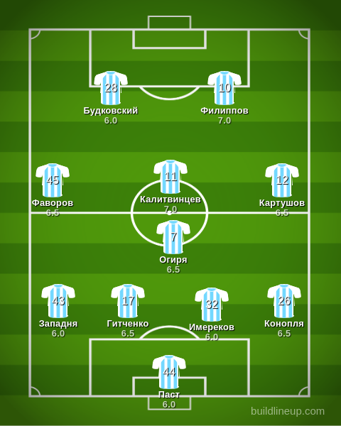 «Десна»: Паст - Конопля, Гитченко, Имереков, Западня (Арвеладзе, 94) - Картушов (Мостовой, 80), Калитвинцев (Старенький, 89), Огиря, Фаворов - Будковский (Тотовицкий, 80), Филиппов (Хлебас, 94)