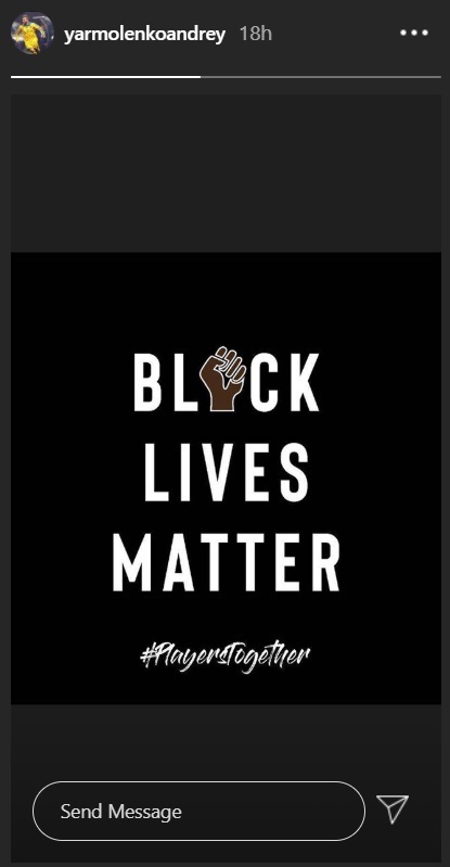 Форвард «Вест Хэма» и сборной Украины Андрей Ярмоленко поддержал движение Black Lives Matter, направленное против расизма и насилия в отношения темнокожих людей: