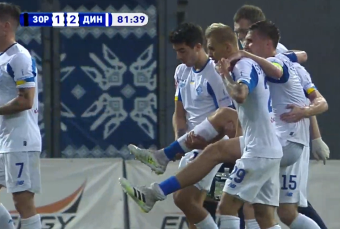 Игрок «Зари» получил красную карточку, а Сидорчука пришлось заменить на Мохаммеда Кадири. Футболисты «Динамо» показывали судье щиток Сидорчука, который Цвек пробил своими шипами.