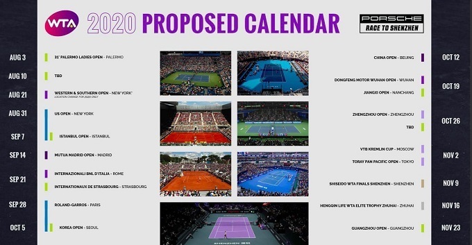 Сегодня ATP и WTA опубликовали обновленную версию календаря теннисного сезона, который возобновится в августе: