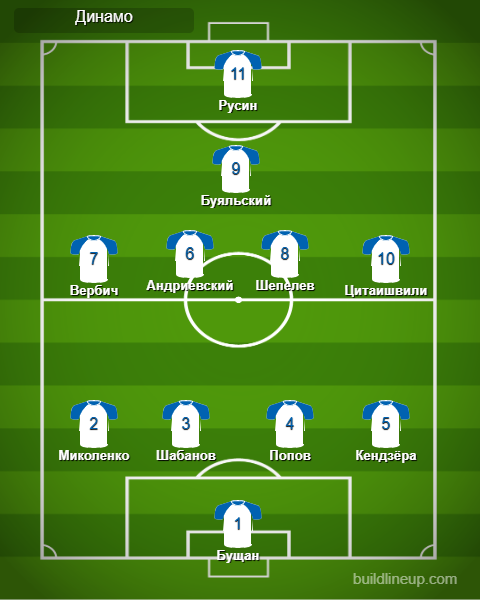 «Динамо»: Георгий Бущан - Денис Попов, Виталий Миколенко, Артем Шабанов, Томаш Кендзера - Беньямин Вербич, Владимир Шепелев (Абдул Кадири Мохаммед, 75), Георгий Цитаишвили (Виктор Цыганков, 46), Александр Андриевский (Миккель Дуэлунд, 57), Виталий Буяльский (Николай Шапаренко, 90) - Назарий Русин (Карлос де Пена, 57).
