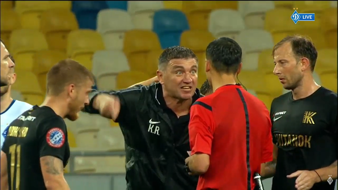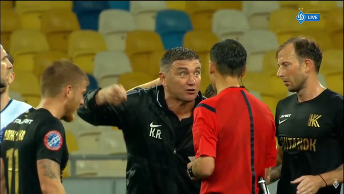 Главный тренер «Колоса» подошел к судье Сергею Бойко, размахивая руками