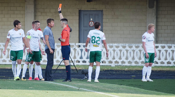 Матч «Ворскла» - «Днепр-1» запомнился не только хорошей игрой соперников, но и удалением. Причем не футболиста, а главного тренера полтавской команды. Уже в дебюте встречи – на шестой минуте, днепряне, которые активнее начали поединок, создали опасный момент у ворот Ризныка. После прострела с правого фланга мяч попал к Булеце, и полузащитник гостей мог завершать, но его зацепил Чеснаков. Арбитр Шурман указал на одиннадцатиметровую отметку. Но вскоре изменил свое решение – после того, как наставник хозяев Максимов начал «прессовать» бокового арбитра. Как Юрию Вильевичу удалось «достучаться» до рефери – одному Богу известно. Но он таки «достучался». Хотя и ценой своего удаления.