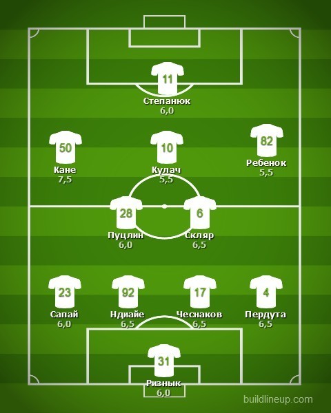 33 мин. МОМЕНТ! Кане пробил в ближний угол от правого угла штрафной, и Гальчук в падении отбил мяч, а Чеснаков с острого угла на добивании не попал в ворота!