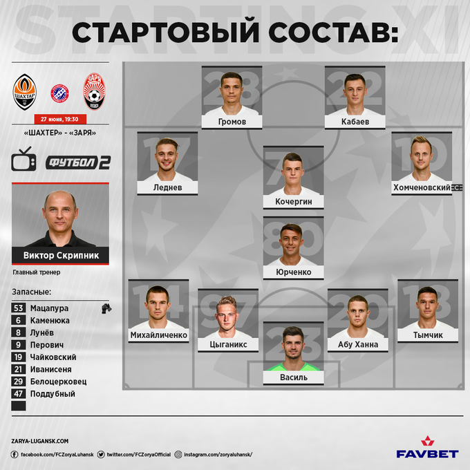 «Заря»: Василь, Тымчик, Абу-Ханна, Цыганикс, Михайличенко, Юрченко, Хомченовский, Кочергин, Леднев, Кабаев, Громов.