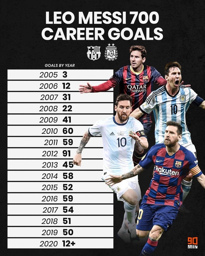 700 голов! Фантастическое достижение Месси!!! Только 7 человек забивали, а уже начиная с 8 го места ни у кого нет даже 600 голов.