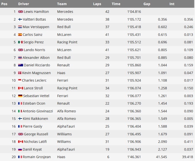 Однако первые две позиции все равно заняли пилоты Мерседеса Льюис Хэмилтон и Валттери Боттас. Топ-3 замкнул Макс Ферстаппен.