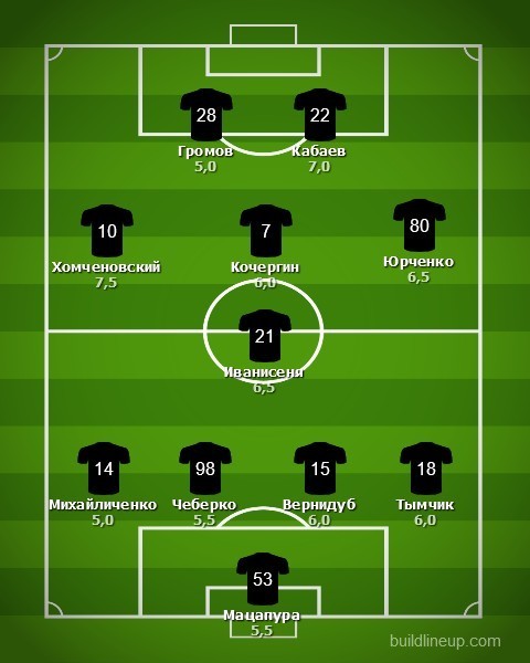 Запас: Никита Шевченко, Никита Каменюка, Игорь Чайковский, Андрейс Циганикс, Максим Лунёв, Владимир Белоцерковец