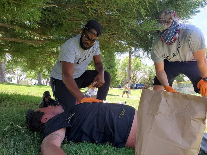 «Мы нашли человека, лежащего посреди парка. Он страдал от сильного обезвоживания. Мы искренне верим, что спасли этому человеку жизнь».