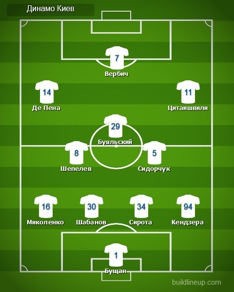«Динамо»: Георгий Бущан – Виталий Миколенко, Артем Шабанов, Александр Сирота, Томаш Кендзёра – Сергей Сидорчук, Владимир Шепелев (Александр Андриевский, 117), Виталий Буяльский (Николай Шапаренко, 99) – Карлос Де Пена, Георгий Цитаишвили (Виктор Цыганков, 60) – Беньямин Вербич.