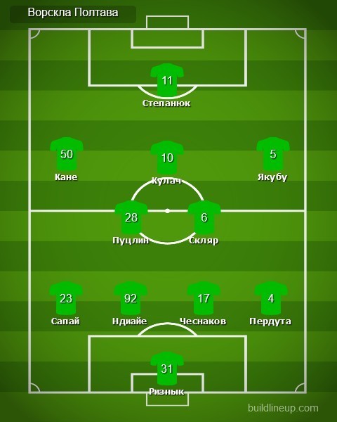 «Ворскла»: Дмитрий Ризнык – Игорь Пердута, Владимир Чеснаков, Альюн Ндиайе, Вадим Сапай – Александр Скляр (Эдин Шехич, 95), Давид Пуцлин, Найджел Якубу (Евгений Опанасенко, 73), Ибрахим Кане – Владислав Кулач (Луизао, 76), Николай Степанюк (Владимир Баенко, 115).