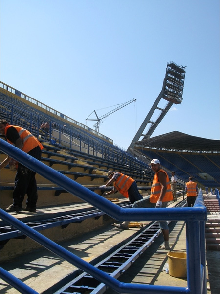 "На Восточной трибуне снимают сидения, чтобы нанести на трибуну изоляцию, которая защитит её от внешних воздействий"