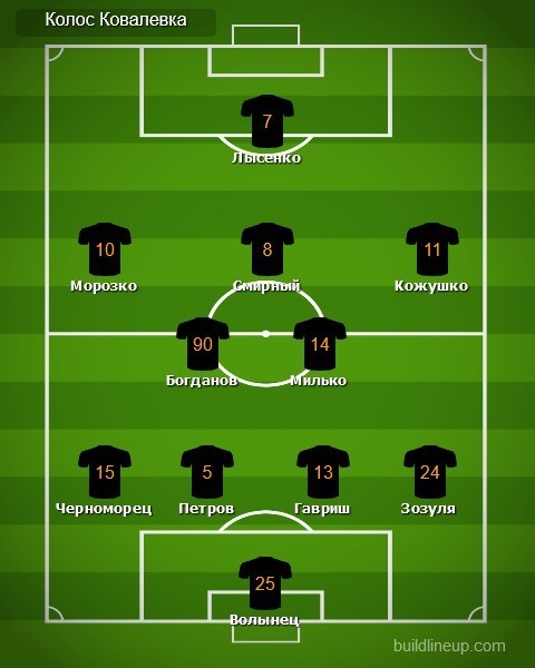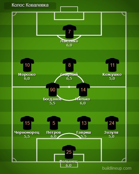 «Колос»: Евгений Волынец, Алексей Зозуля, Виталий Гавриш, Кирилл Петров, Aлександр Черноморец, Вадим Милько (Евгений Задоя, 75), Андрей Богданов, Евгений Смирный, Олег Кожушко (Денис Антюх, 46), Евгений Морозко (Павел Ориховский, 68), Владимир Лысенко (Александр Бондаренко, 75).