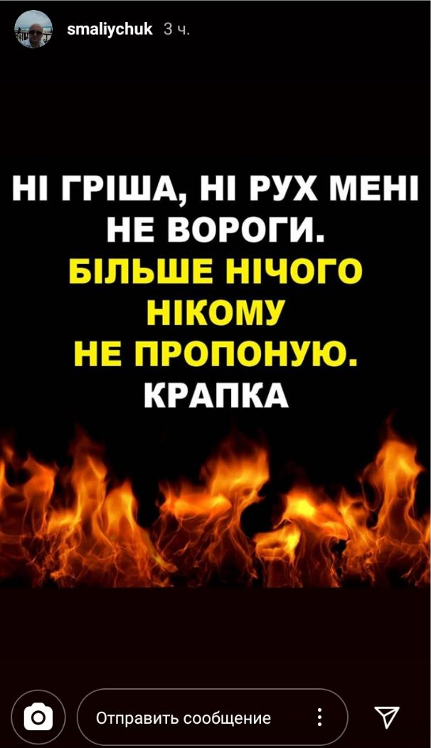 «Ни Гриша, ни «Рух» мне не враги. Больше ничего никому не предлагаю. Точка», - написал Смалийчук в Instagram.