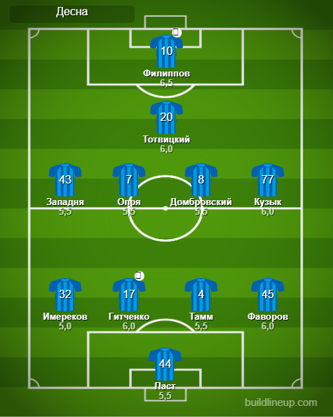«Десна»: Арвеладзе - б/0, Картушов - 6,0, Мостовой - 6,0, Будковский - 6,5, Хлёбас - б/0.