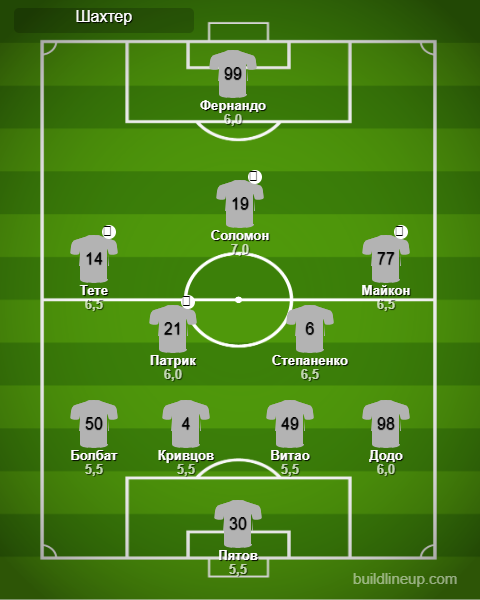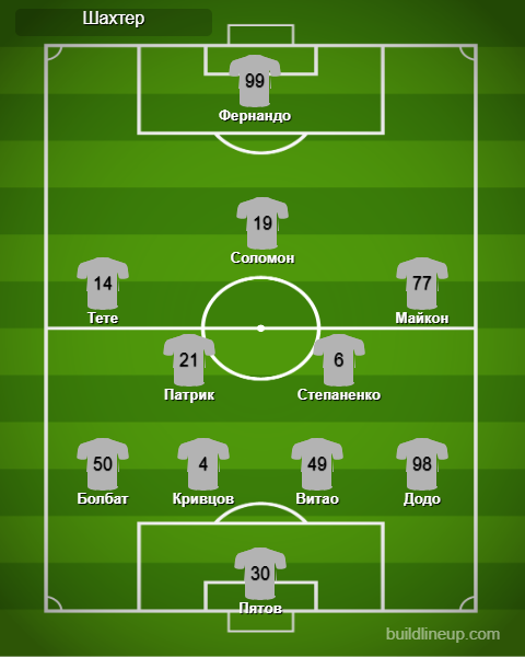 «Шахтер»: Пятов, Додо, Кривцов, Витао, Болбат (Сиприано, 76), Майкон (Маркос, 70), Степаненко, Патрик, Тете (Мудрик, 82), Соломон (Тайсон, 70), Фернандо (Сикан, 76).