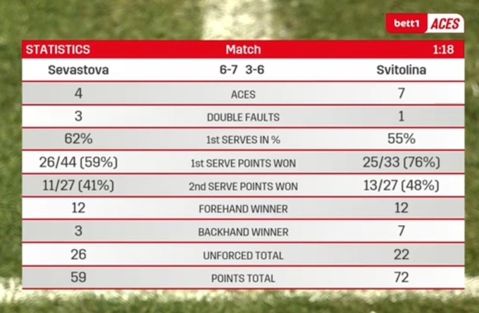 Элина Свитолина (Украина) – Анастасия Севастова (Латвия) – 7:6(2), 6:3