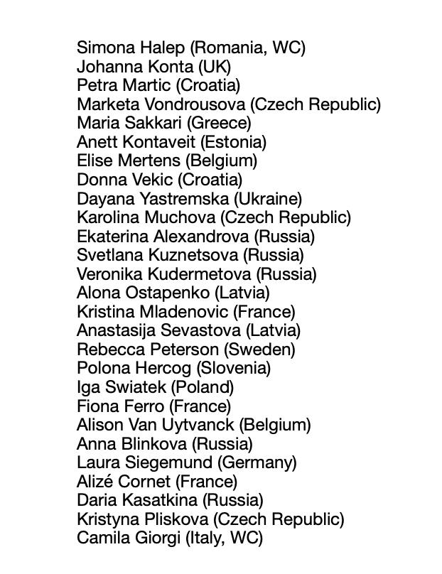Отметим, что первой и второй позиции в альтернативном списке на попадание в квалификацию находятся две украинские теннисистки: Леся Цуренко (№139) и Марта Костюк (№141).