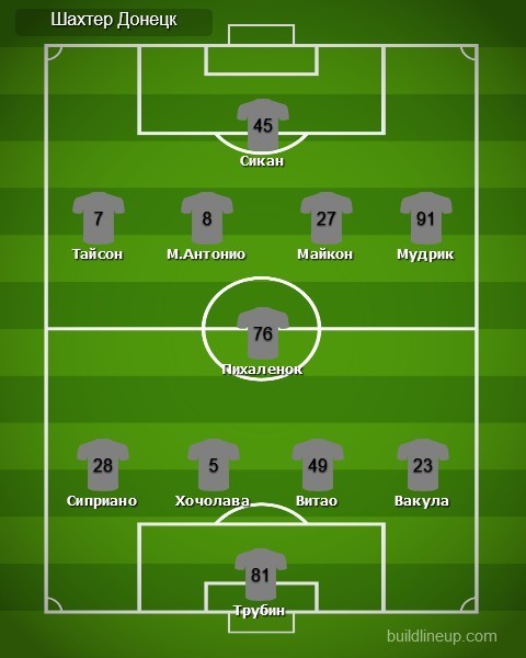 «Шахтер»: Анатолий Трубин, Владислав Вакула (Николай Матвиенко, 82), Витао, Давид Хочолава, Маркиньос Сиприано, Майкон (Манор Соломон, 63), Aлександр Пихалёнок (Алан Патрик, 63), Маркос Антонио, Михаил Мудрик (Ромеро Марлос, 63), Даниил Сикан (Жуниор Мораес, 63), Тайсон.