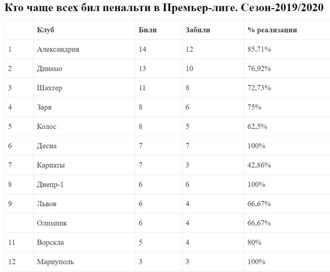 Таким образом, «Александрия» вышла на первое место сезона-2019/2020 в двух рейтингах. Первый – по количеству пробитых пенальти. Второй – по количеству забитых. Примечательно, что случилось это как раз в матче с «Динамо», которое теперь в обоих рейтингах – второе.
