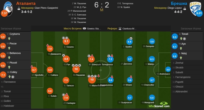 Украинский полузащитник «Аталанты» Руслан Малиновский провел фантастический матч в чемпионате Италии против «Брешии» (6:2).