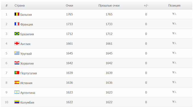 ФИФА обновила рейтинг сборных, в котором сборная Украины продолжает занимать 24-е место.
