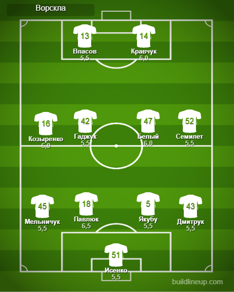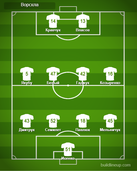 «Ворскла»: Исенко — Дмитрук, Семилет (Костенко, 88), Павлюк, Мельничук (Кулаковский, 83) — Якубу, Белый (Дубко, 46), Гаджук, Козыренко (Посевкин, 55) — Кравчук, Власов (Галата, 46).