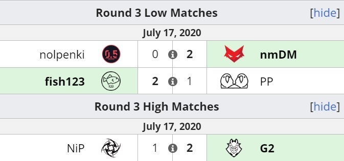 После третьего дня стали известны участники плей-офф - fish123, Ninjas in Pyjamas, G2, need more DM.