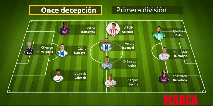 Силлессен – Коррейя (оба – «Валенсия»), Калеро («Эспаньол»), Фирпо («Барселона») – Лопеш («Севилья»), Денис Суарес («Сельта»), Варгас («Эспаньол»), Феликс («Атлетико») – Гризманн («Барселона»), Йович («Реал»), Иглесиас («Бетис»).