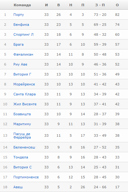 Лиссабонская команда за тур до конца идет на 2-м месте (74 очка) в турнирной таблице, уступив чемпионство «Порту» (82 очка).