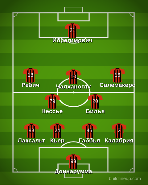 Запас: Бегович, А. Доннарумма, Дуарте,Брешиани, Пакета, Олзер, Коломбо