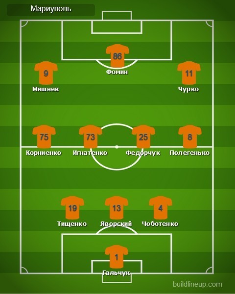 «Мариуполь»: Евгений Гальчук, Павел Полегенько, Сергей Чоботенко, Сергей Яворский (Даниил Сагуткин, 87), Игорь Тищенко, Даниил Игнатенко (Максим Чех, 87), Валерий Федорчук (Алексей Кащук, 99), Вячеслав Чурко (Дмитрий Топалов, 72), Виктор Корниенко, Дмитрий Мишнёв, Руслан Фомин (Андрей Кулаков, 99)