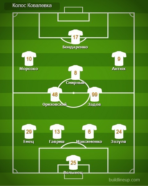 «Колос»: Евгений Волынец, Алексей Зозуля, Максим Максименко, Виталий Гавриш (Кирилл Петров, 57), Владислав Емец, Евгений Задоя (Денис Костышин, 100), Павел Ориховский (Вадим Милько, 74), Евгений Смирный, Денис Антюх, Евгений Морозко, Александр Бондаренко (Владимир Лысенко, 75)