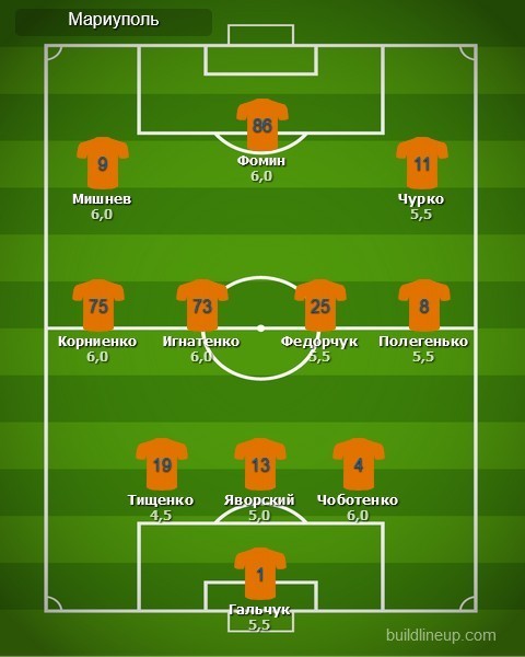Замены «Мариуполя»: Дмитрий Топалов - 5,5; Даниил Сагуткин - 5,5; Максим Чех - 5,5; Андрей Кулаков - 5,0, Алексей Кащук - 5,0.