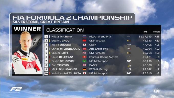 На Гран-при Великобритании завершилась основная гонка в Формуле-2. Пилот команды Према Мик Шумахер стартовал 3-м, однако заезд провел неудачно.