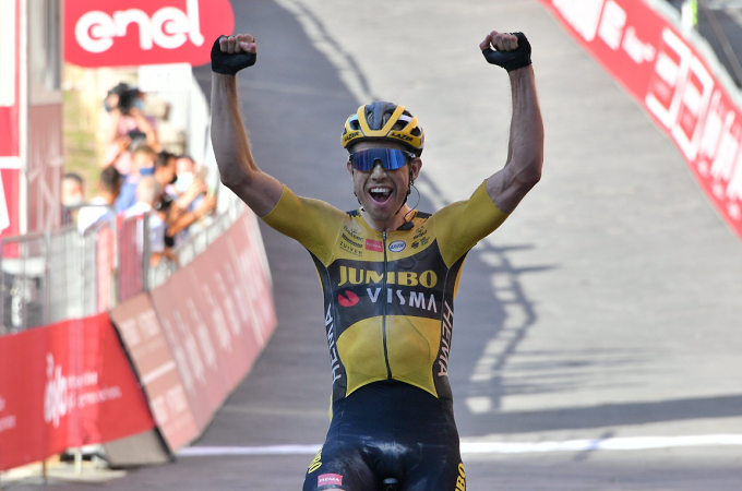 Долгожданную победу на Пьяцца дель Кампо в Сиене отпраздновал Воут Ван Арт, который в предыдущие два года финишировал здесь третьим. Решающей стала атака бельгийца из Jumbo Visma за 13 км до финиша на последнем гравийном подъеме Тульфе. Ответить на эту атаку никто из соперников не смог, и звезда велокросса (и теперь уже и шоссейного велоспорта) уехал за красивой сольной победой.