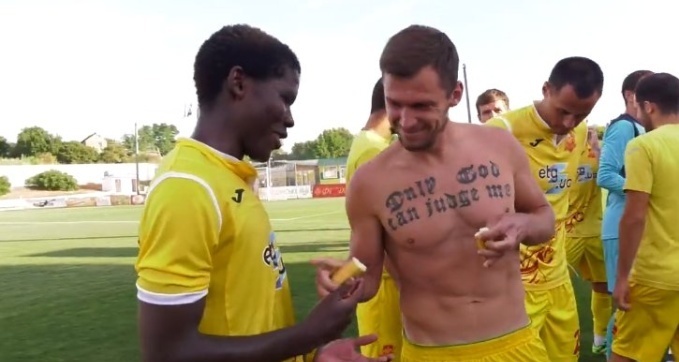 ФОТО. Африканский форвард Ингульца забил 2 гола и получил банан