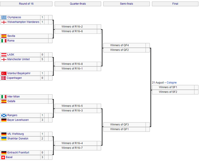 Начиная с 1/4 финала, все противостояния будут состоять из одного матча. Поединки Лиги чемпионов пройдут в Лиссабоне (на двух стадионах – «Бенфики» и «Спортинга»), а Лига Европы будет доиграна в нескольких городах Германии (Кельн, Дюссельдорф, Гельзенкирхен, Дуйсбург).