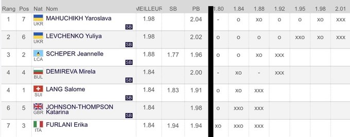 Третье место заняла Жанель Шепер из Сент-Люсии с результатом 1.88 м (на целых 10 см ниже прыжков украинок).