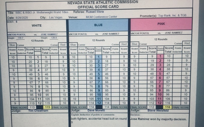ИТОГ: Победа Рамиреса по очкам решением большинства судей: 114–114, 115–113, 116–112.