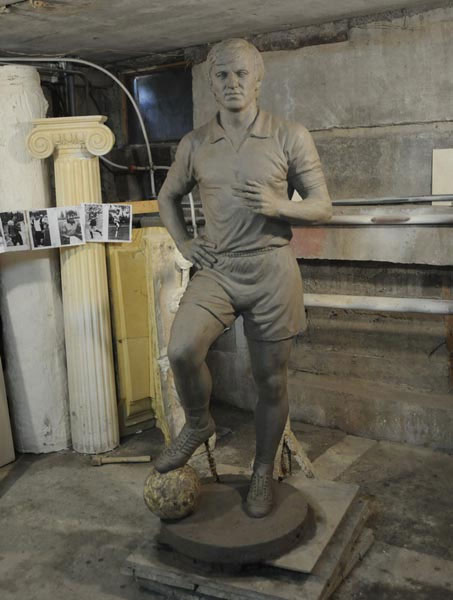 Почти месяц известный донецкий скульптор Николай Загребной работает над очередным своим детищем — скульптурой Михаила Соколовского, прославленного футболиста донецкого «Шахтера». На сегодняшний день работа в самом разгаре — легендарный «бригадир» в натуральную величину «застыл» пока в глине, чуть позже изваяние станет гипсовым. Вот тогда-то и можно будет говорить о полной готовности скульптуры.